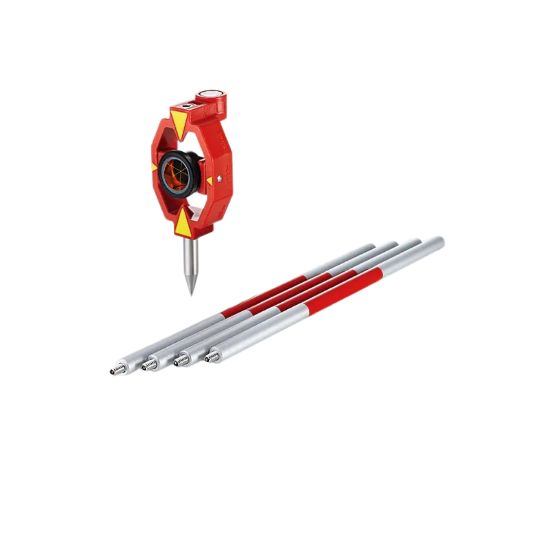 W zestawie znajduje się czterosegmentowa tyczka Leica GLS115 oraz szpic, co pozwala na szybkie dostosowanie wysokości pracy pryzmatu – od 10 cm aż do 130 cm.