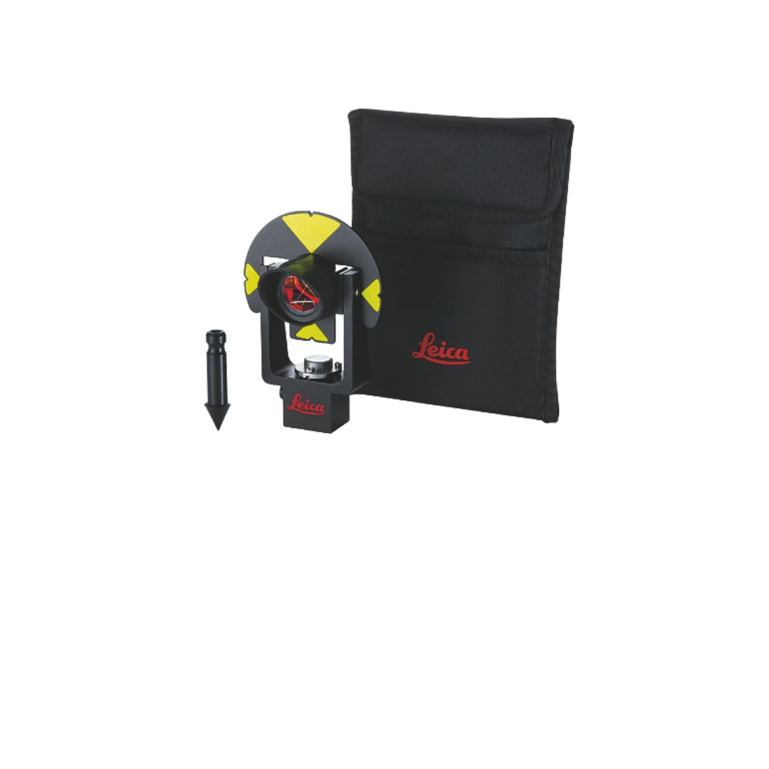 Leica GMP101 to profesjonalny minipryzmat z uchwytem metalowym, libellą i tarczą celowniczą. Zestaw zawiera także szpic i pokrowiec. Zasięg 2.000 m, dokładność 1 mm, stała +17,5 cm.